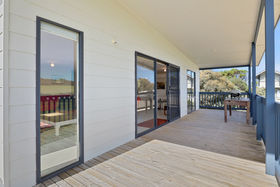 Accommodation is well-catered for with three spacious bedrooms, each fitted with ceiling fans, and a central bathroom. Sliding doors flow onto a wrap-around deck, perfect for entertaining or simply taking in the sweeping coastal views and the natural beauty of Dhilba Guuranda-Innes National Park. Practical inclusions add to the appeal, with two 22,000L rainwater tanks plumbed to the home and a 3x3m shed, with scope to extend for extra boat storage.