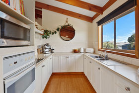 Set on a generous 876sqm allotment with 164sqm of internal living, this coastal retreat is designed for relaxed family living and entertaining. The home offers three spacious bedrooms, including a master with walk-in robe, and two bathrooms conveniently located across both levels. With two large living areas - one upstairs and one downstairs - there's plenty of room for everyone to spread out, while raked ceilings add a sense of wow factor and space throughout. Comfort is assured year-round with ceiling fans in every bedroom and the upstairs living, split system reverse cycle air conditioning, and a cosy combustion heater in the main living area.